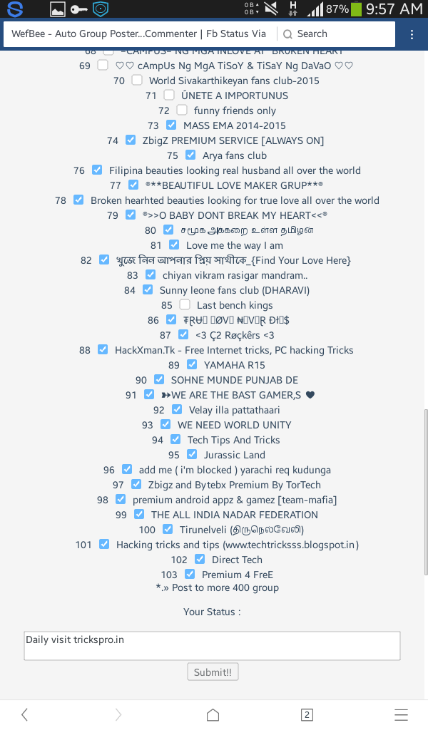 Wefbee auto tools will save your time. It will post upto 500 groups with in a minute. And 100% trusted. No spam. So let’s try Wefbee auto tools