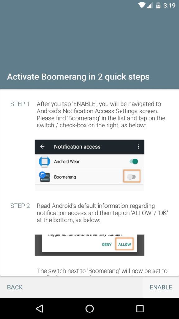 - Now, before you think Boomerang is going to become a hassle by constantly making you choose whether you want to save a notification or not, don’t worry. You get to select which apps Boomerang works its magic on. So if you like Google Inbox on Android and its reminder feature, disable it in Boomerang’s settings and continue to use it as you always do. But if you use Gmail, which doesn’t have a built-in reminder feature, then you just got it through Boomerang.