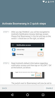 - Boomerang Notifications is the solution to be the reminder problem. It’s the simplest yet coolest app I have seen in a long time, and it immediately makes me wish this was a core feature in Android.